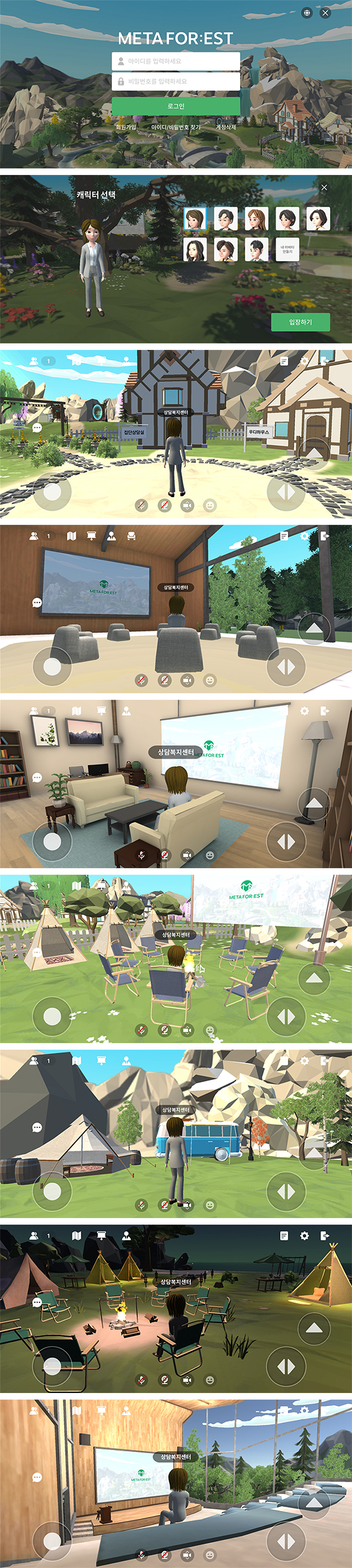 메타버스 상담은 일상생활에서 겪는 다양한 어려움과 심리적인 문제에 대해 언제·어디서나 VR장비 없이도 편리한 PC환경에서 상담할 수 있습니다. 자신의 얼굴과 정보 노출없이 비대면으로 실시간 표정인식과 AI 감정인식으로 사용자의 표정과 감정이 아바타에 구현되어 효과적인 심리상담이 가능합니다.